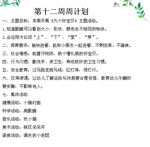 第十二周温馨提示