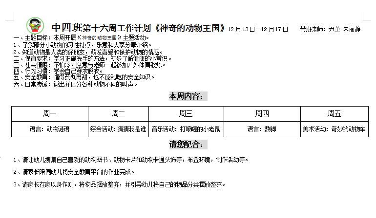 第十六周周计划