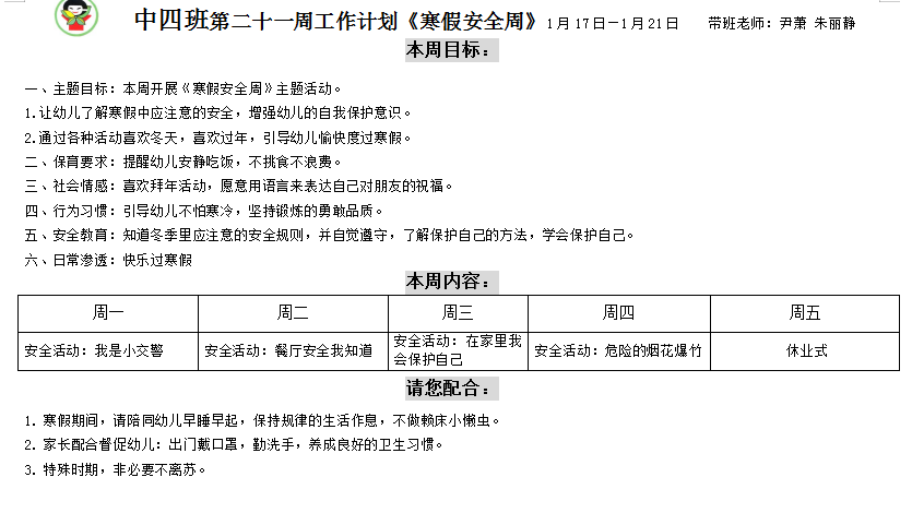 第二十一周周计划