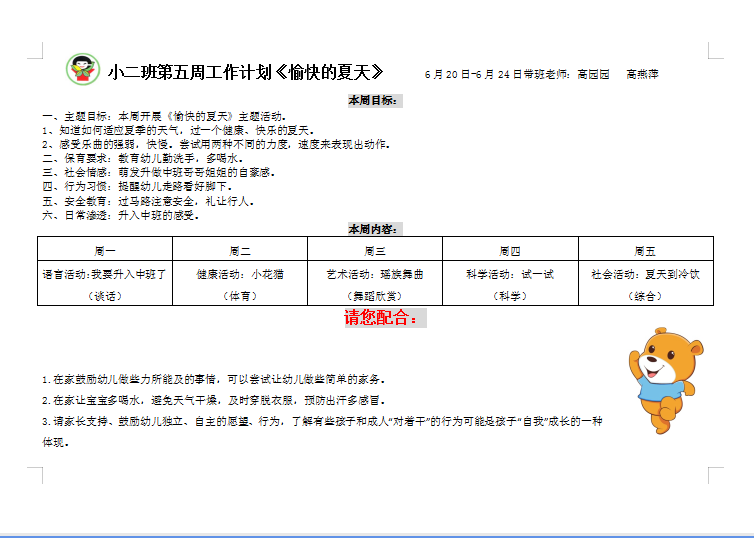 第五周周工作计划